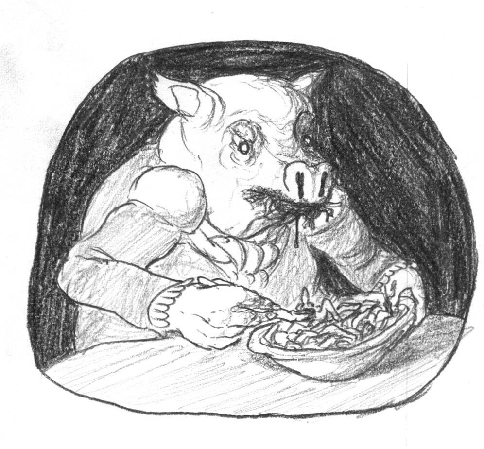 Dan Peacock is a digital artist centered in Leicestershire, United Kingdom. His artstyle can be described as dark and disturbing, but some of his posts are comedic in a morbid sense. From my observations, the skill and detail presented in his pieces is the main draw of his artwork, as well as the fascinating subject matter. His most recent post on Twitter at the time of writing this is on April 24th. His work can be found most recently in the adult swim cartoon “Smiling Friends”. He has also done concept art for other projects, such as trading cards. His work can be found on Twitter @PencilMoose and on ArtStation. He has over 41,000 Followers on Twitter, and over 6000 on ArtStation (Links to these accounts can be found at the end of this document). Dan Peacock also offers tutorials on Gumroad, which are also available for purchase. (Links to this account will also be posted at the end of this document)
